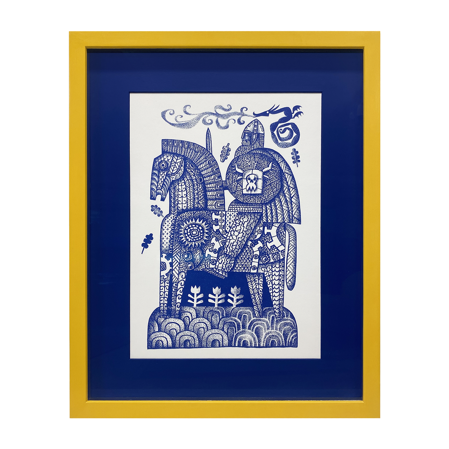 We wanted the brilliant blue of this print to pop so we used Little Greene's Smalt on the mount and contrasted it with the Mister David - a lovely bright yellow - on the frame. It's a really fun and striking colour combination and we love the way this framed print turned out.