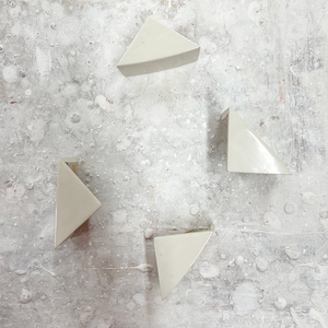 Off-white lacquer triangles, painted Farrow & Ball Shadow White, are a perfect fit