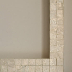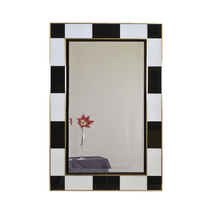 Pictured to the left: a bespoke mirror finished in our painted Chequered Frame design.
